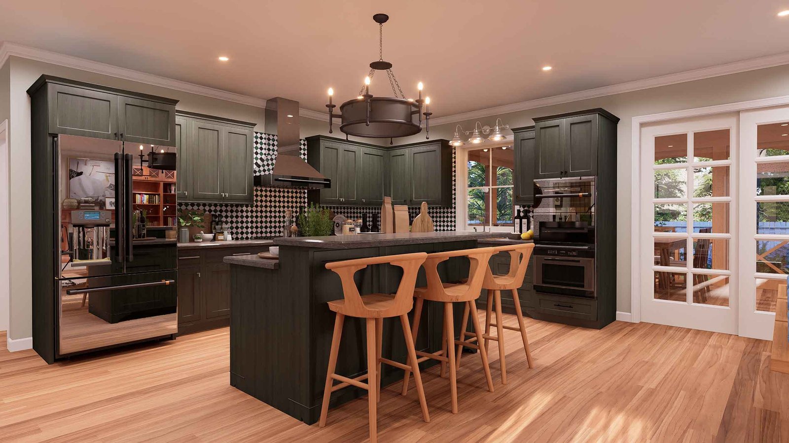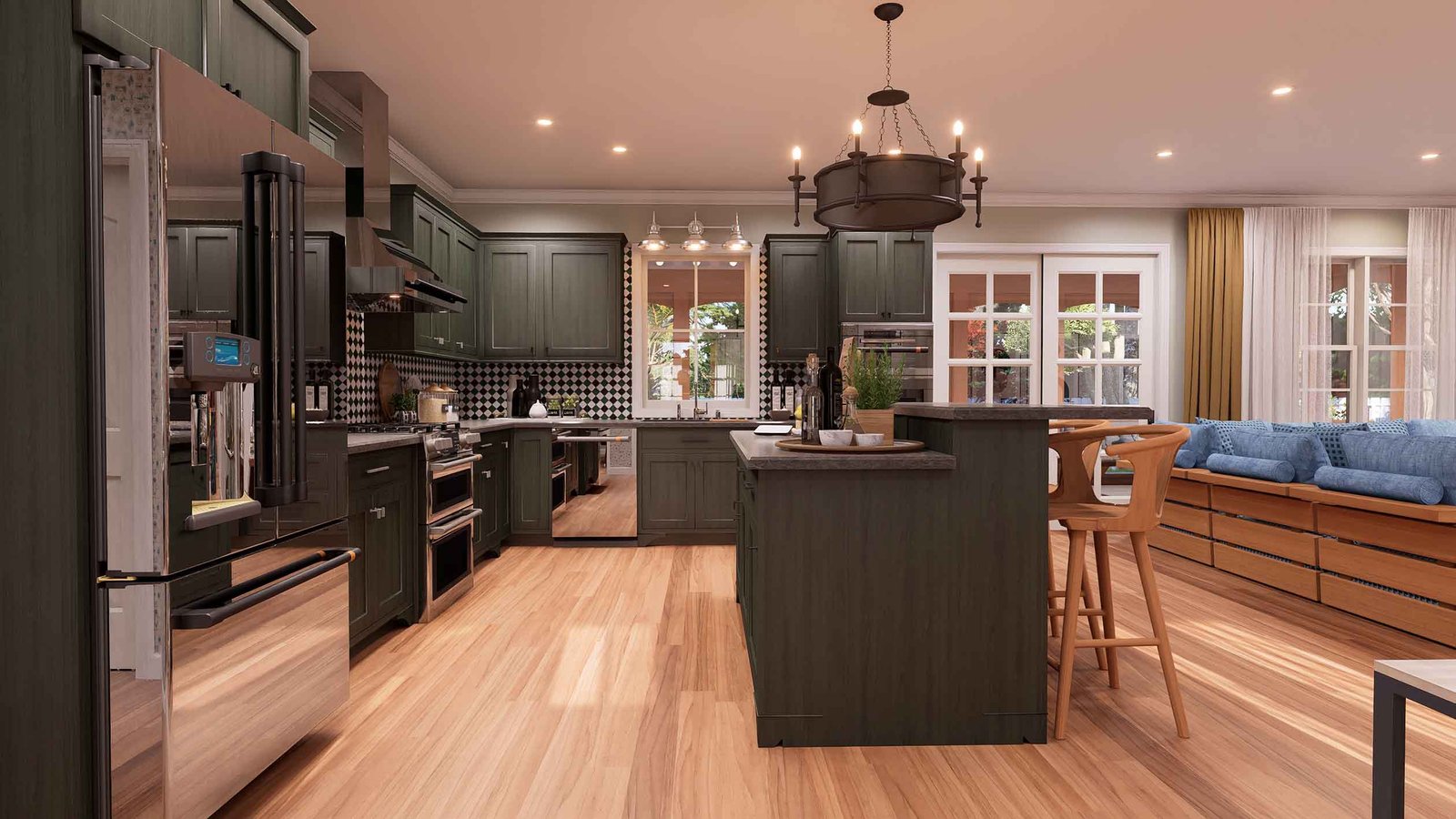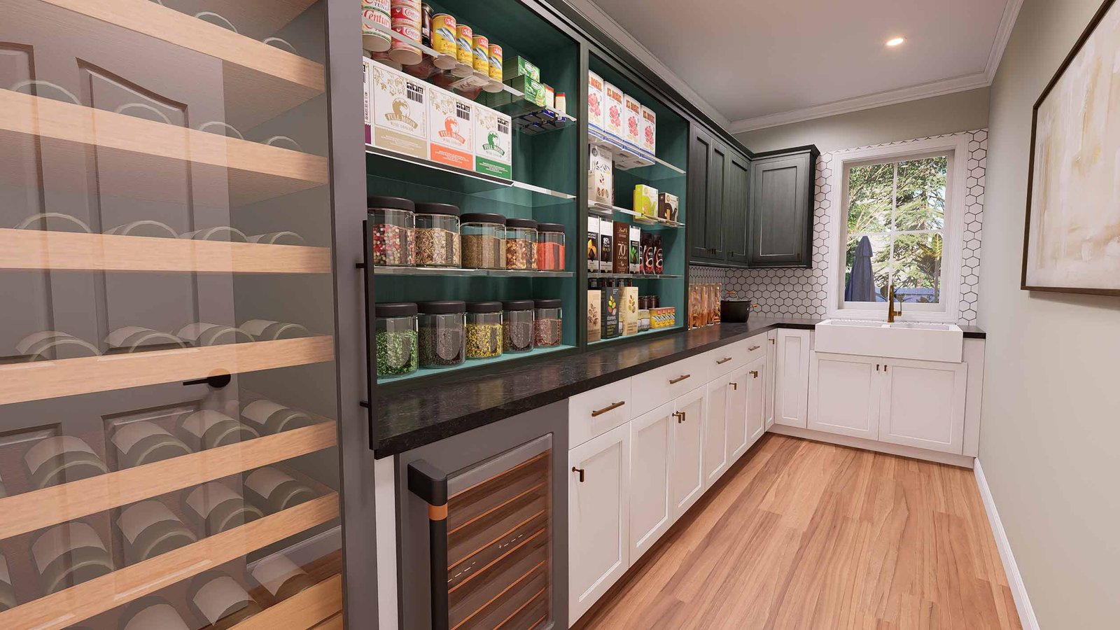 -Large Kitchen with island, pantry, and detailed cabinetry plan