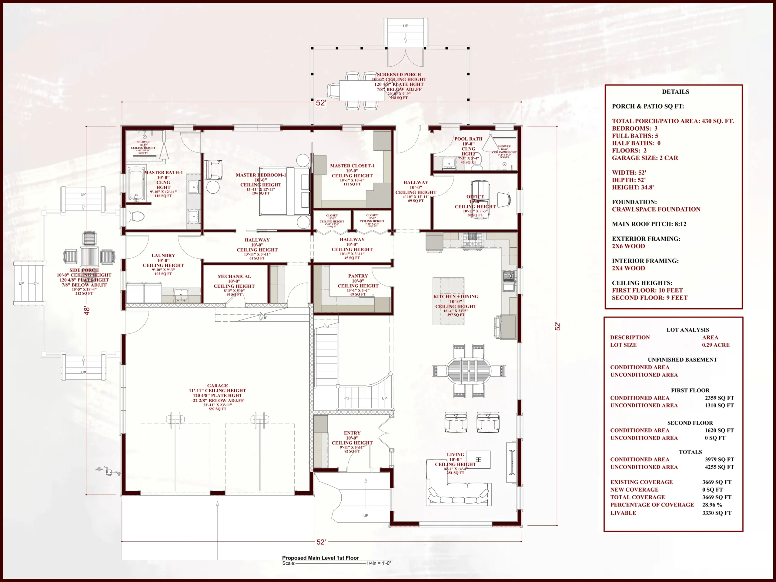Dimensions: 52′ Width x 52′ Depth