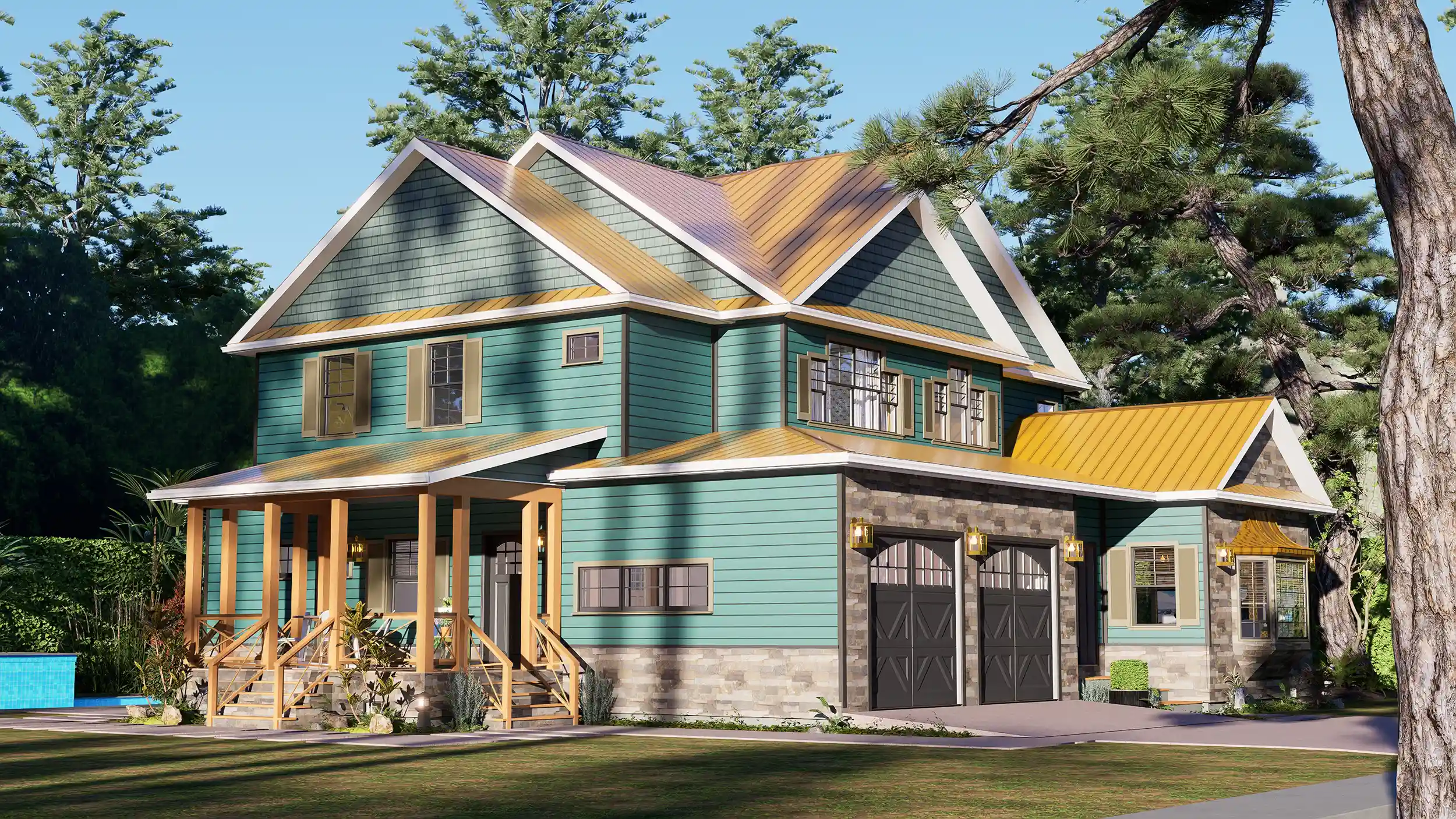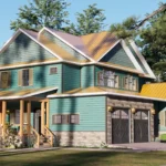 Designed for families who refuse to compromise on style or space, this stunning 3,979 sq. ft. residence redefines the traditional cottage. With its striking teal siding, natural stone accents, and inviting wrap-around porch, this home offers massive curb appeal that stands out in any neighborhood or rural setting.