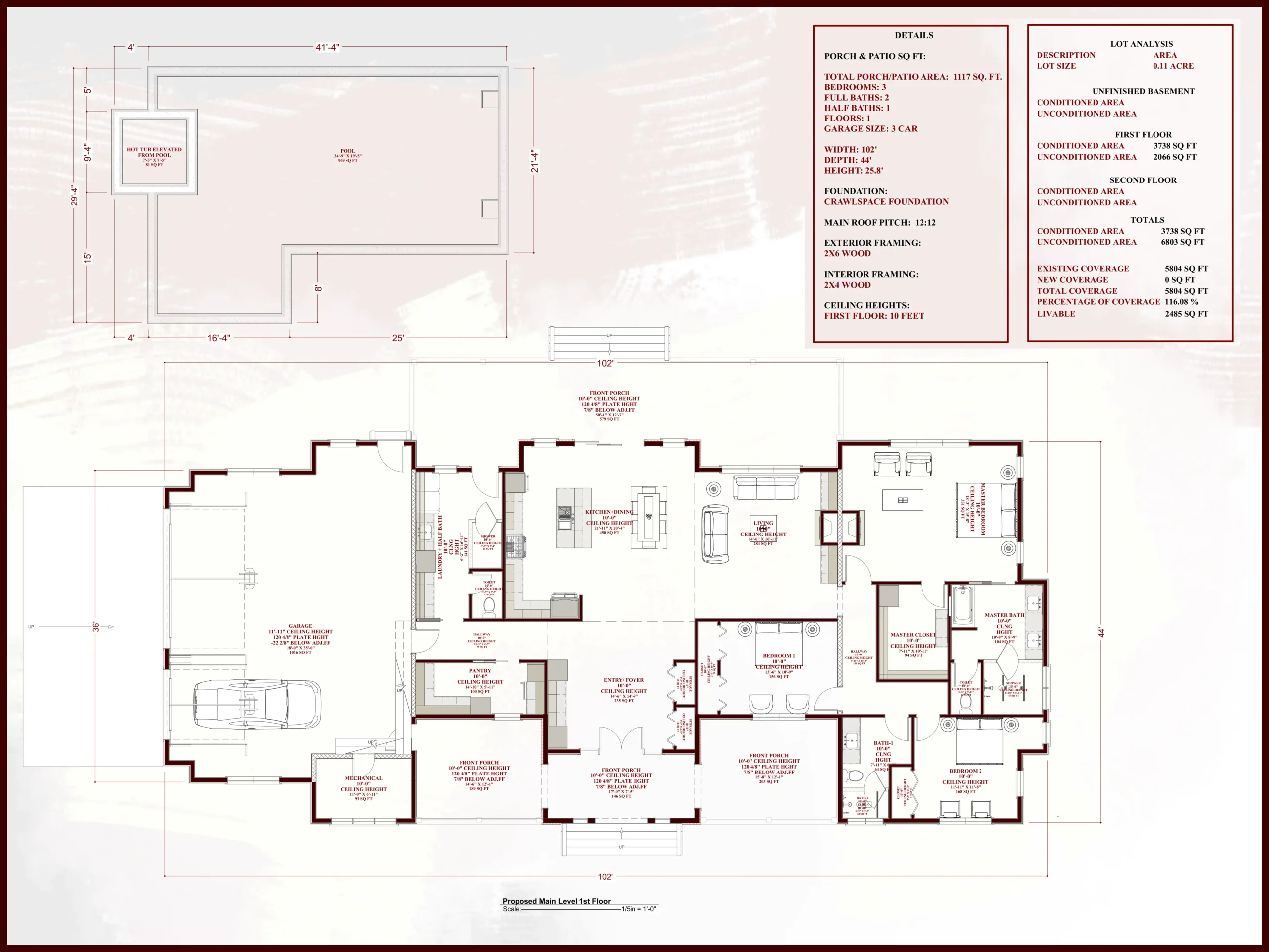 Designed for the modern hobbyist, the 3-car garage provides ample room for vehicles and a workshop. The true “wow” factor lies at the rear: a beautiful pool and backyard deck area that spans over 1,100 sq. ft., making it the ultimate sanctuary for summer relaxation.