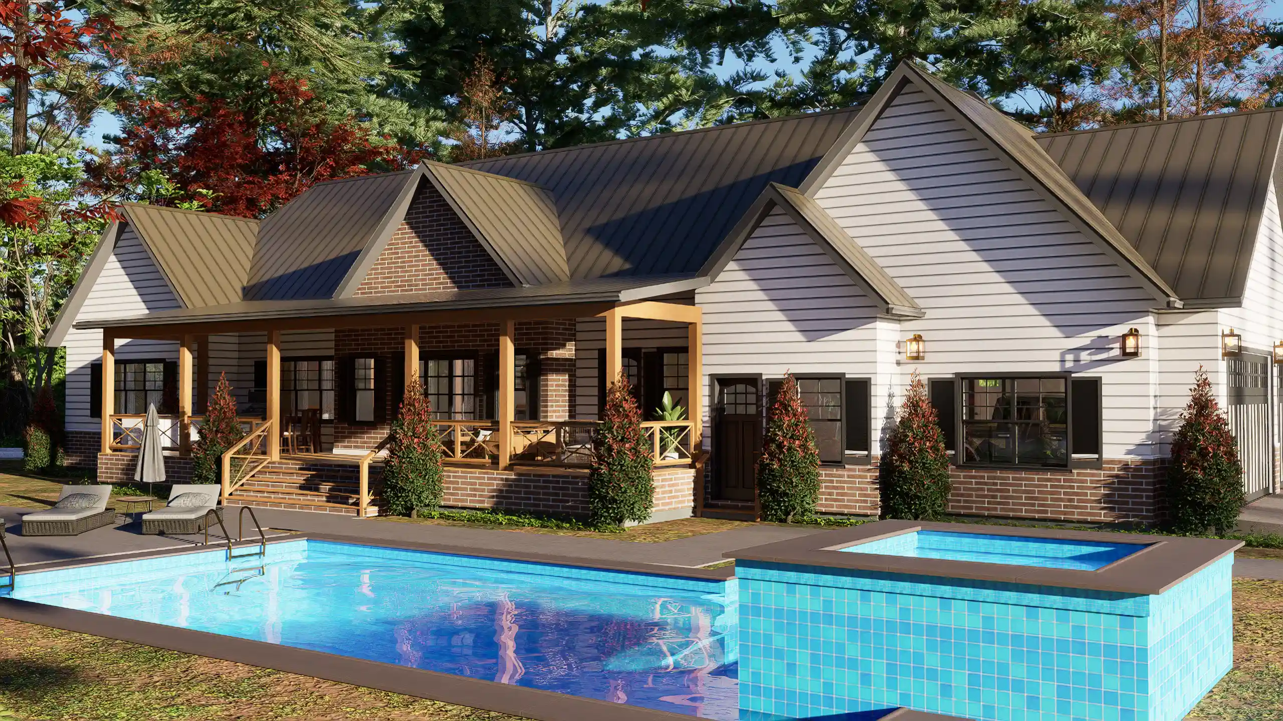Welcome to a home that seamlessly blends rustic charm with high-end luxury. This Modern Cottage House is designed for those who value space, light, and an outdoor-centric lifestyle. Spanning an impressive 3,738 heated square feet, this single-story masterpiece offers a sprawling 102-foot wide footprint that commands attention from the curb.