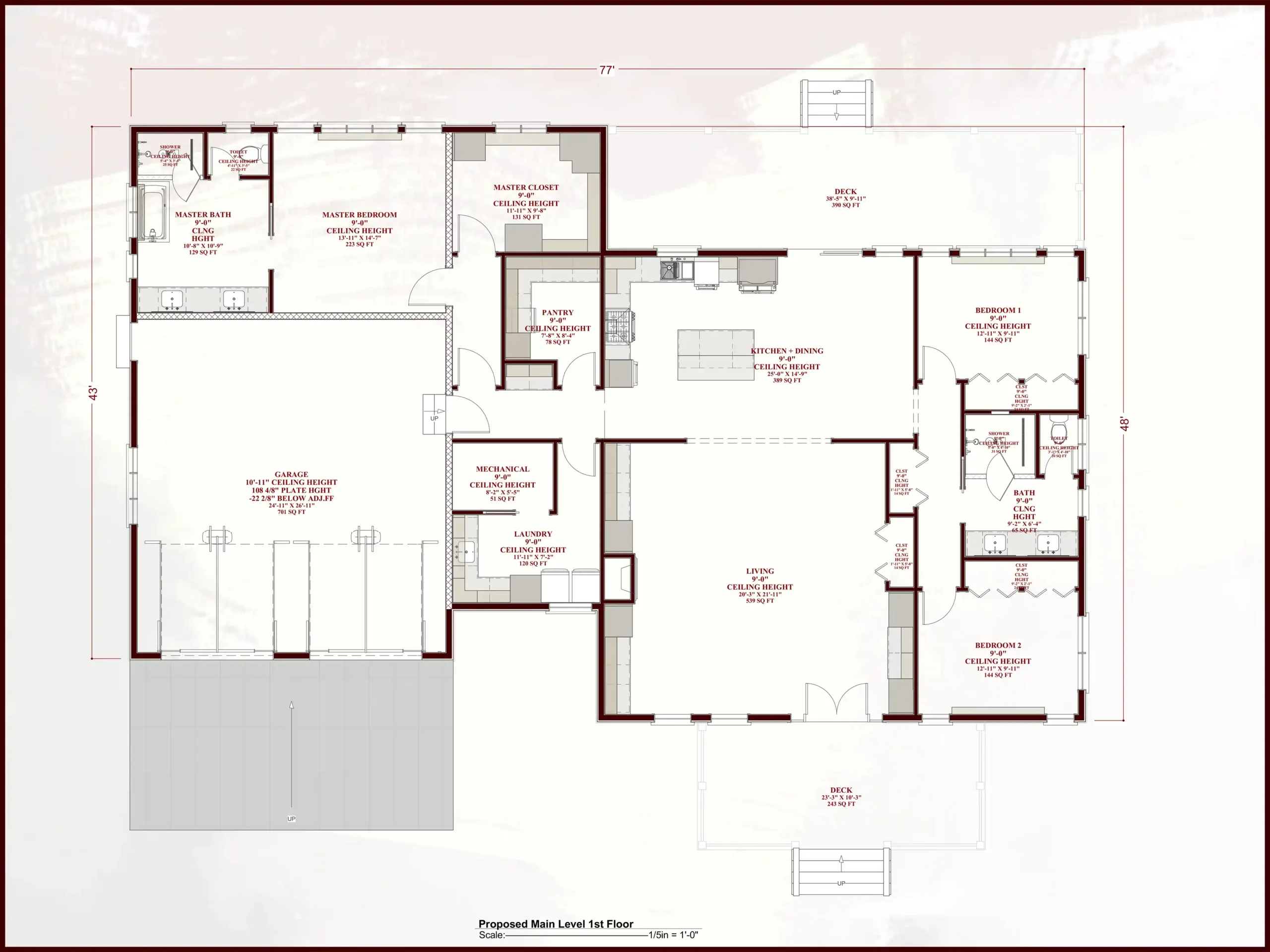 9’ Ceilings with Natural Wood Beams