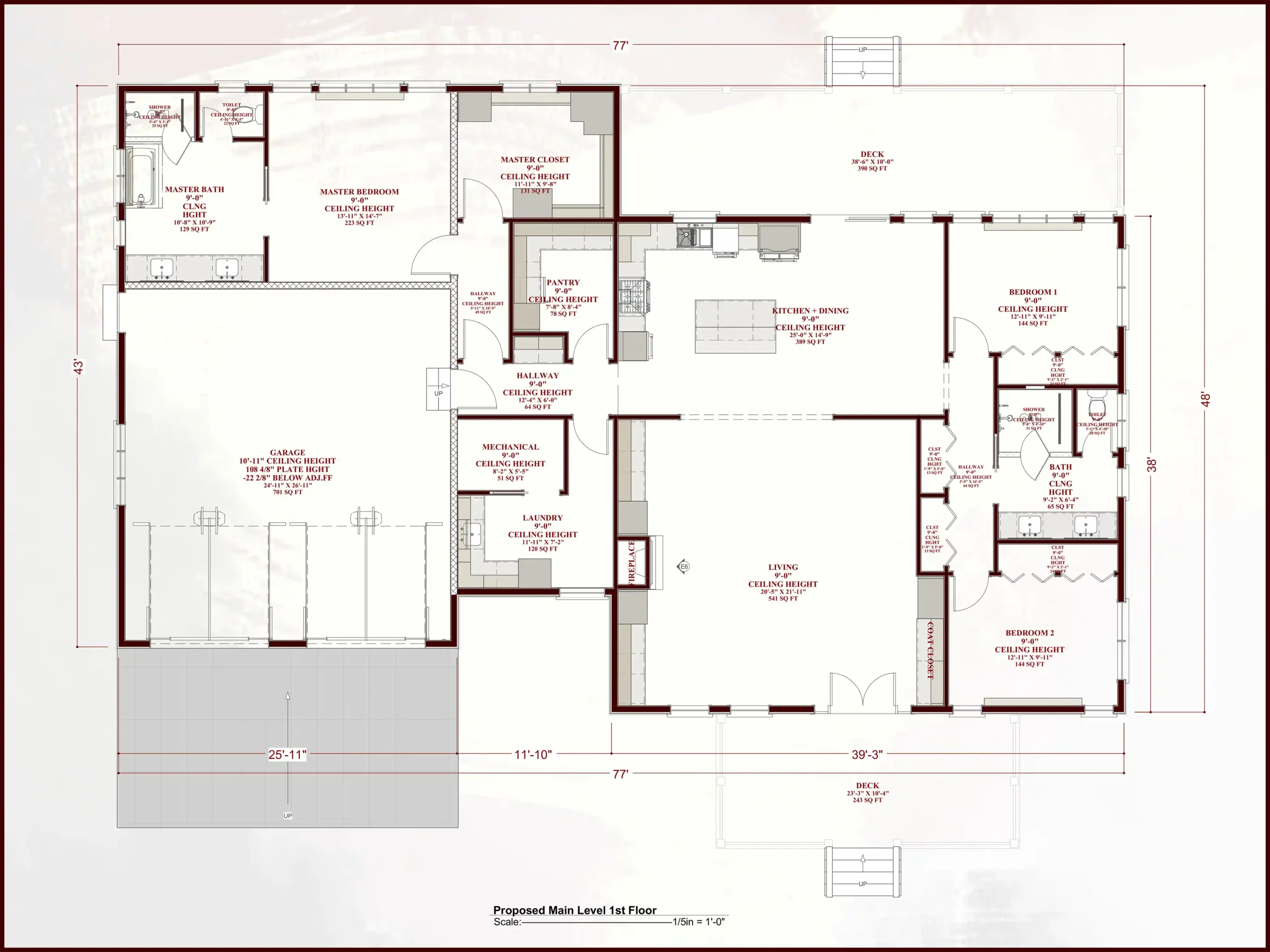 - 3 Full Bathrooms: Enjoy the convenience of three full bathrooms, including a luxurious master bath with a large master suite and walk-in closet. All bathrooms feature 9-foot ceilings for an airy, elegant feel.