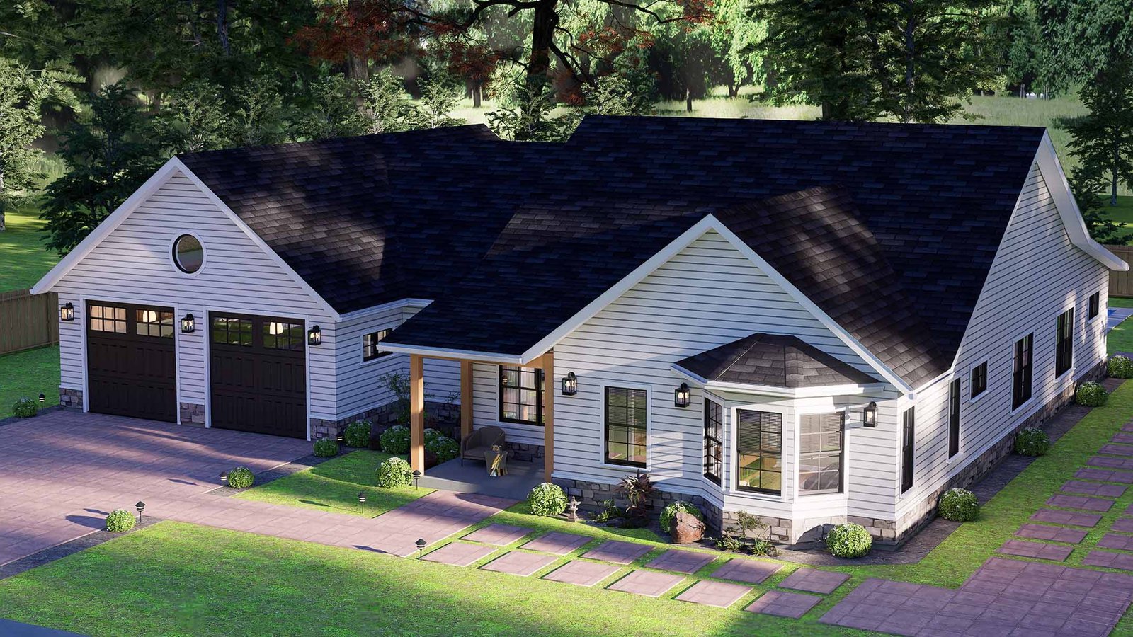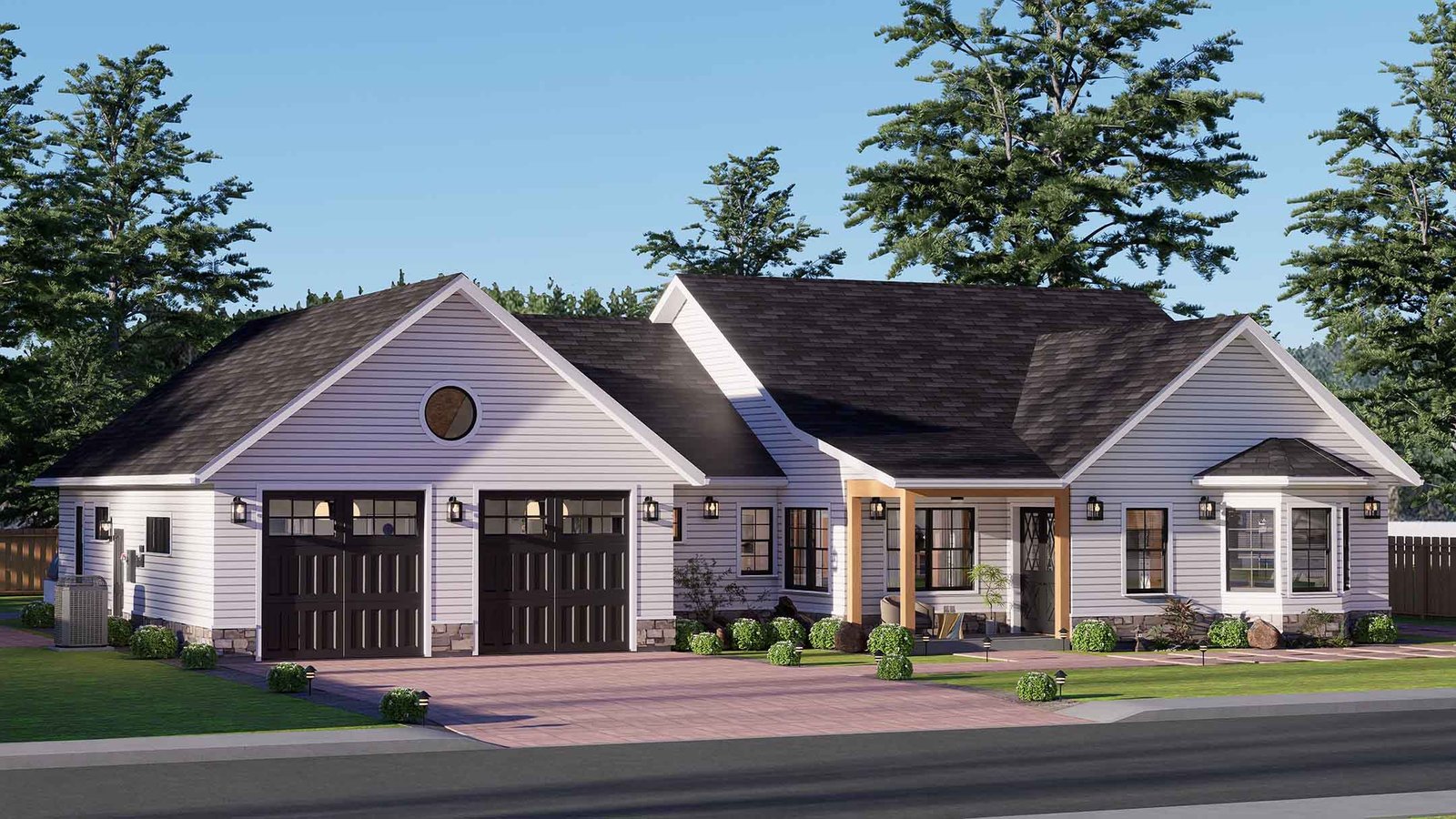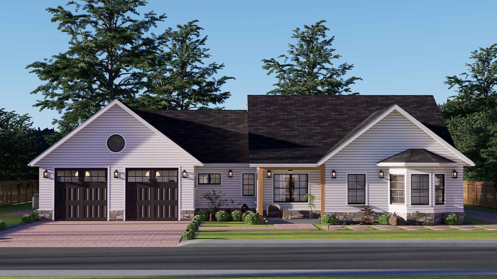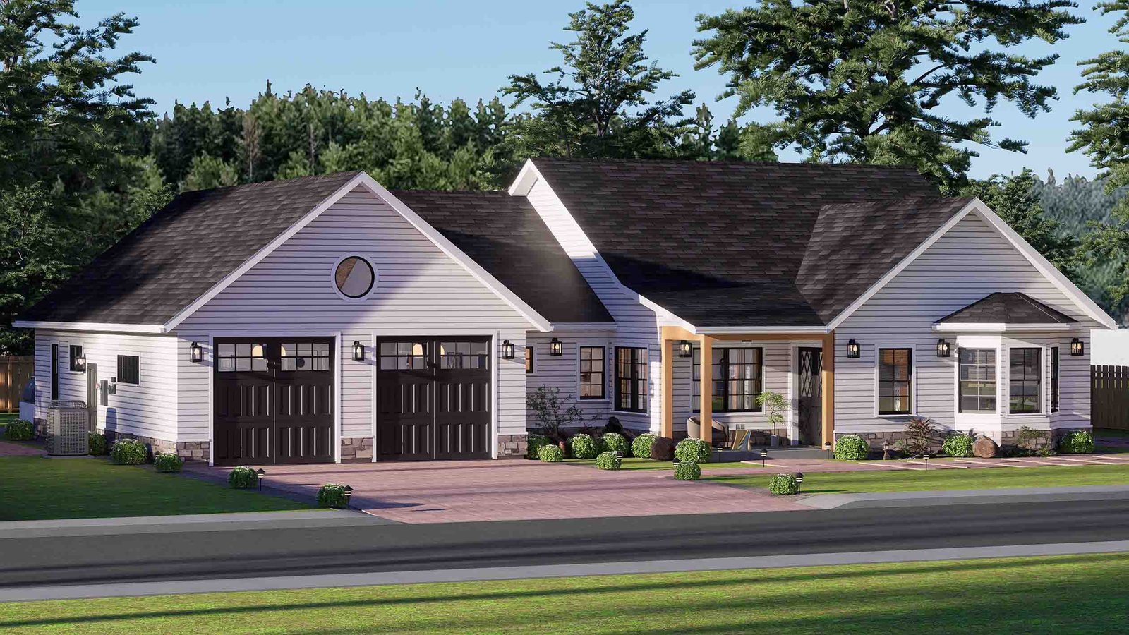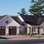 This charming single-story 4 bedroom cottage house plan blends modern functionality with classic curb appeal. Designed with an efficient open layout, it offers 2,495 sq. ft. of conditioned living space plus a spacious 652 sq. ft. two-car garage and 308 sq. ft. of porch/patio space. This 4 bedroom cottage house plan is ideal for families seeking both comfort and style.